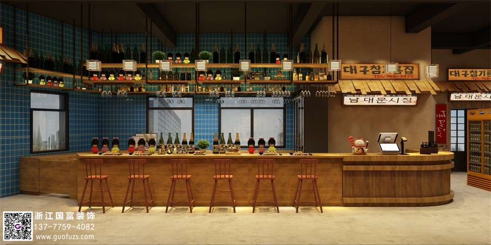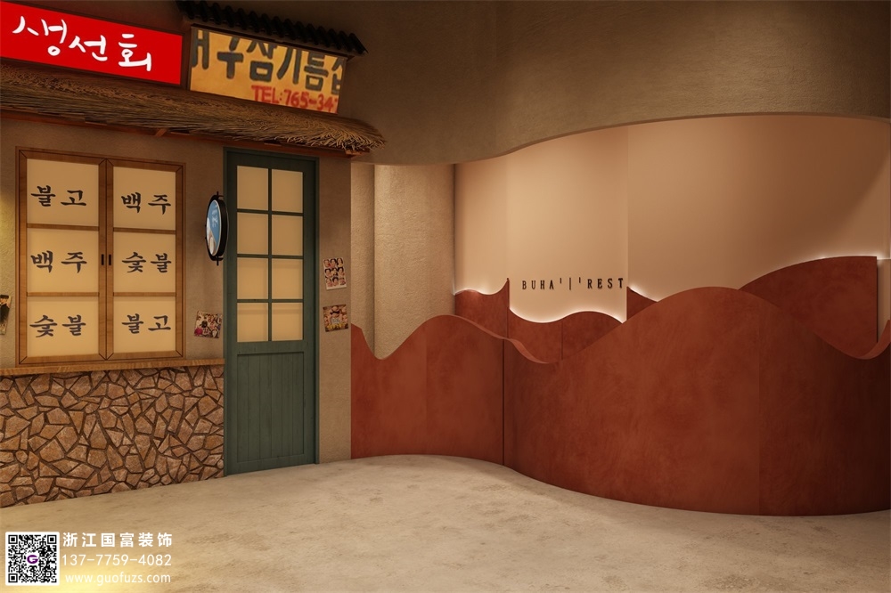 杭州農(nóng)家風格韓式烤肉店設計效果圖
